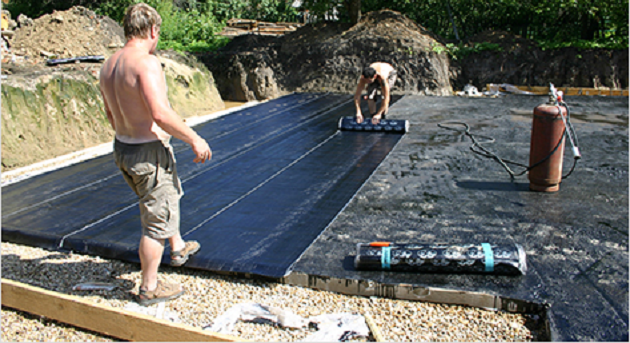 - Гидроизоляция. Выполняет роль барьера при движении грунтовой влаги. Рекомендуется устанавливать минимум два слоя рулонной гидроизоляции (полимер-битумной).