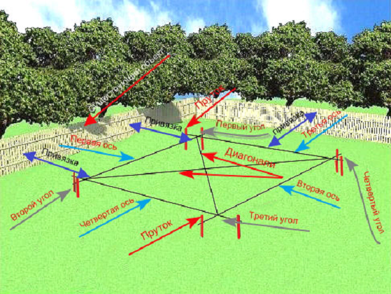 Как точно произвести разметку фундамента под дом своими руками – я описывал в одной из предыдущих статей, на этом останавливаться не будем. Рассмотрим лишь некоторые незначительные отличия: