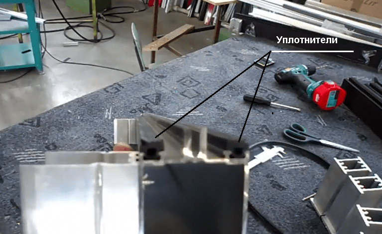 Резиньте ригели с запасом уплотнителей примерно пять миллиметров. Это нужно для того, чтобы во время температурных расширений уплотнитель постоянно плотно прилегал к поверхностям. Потом во время окончательной сборки выступающий кончик сжимается и с усилием садится на место в канавку.